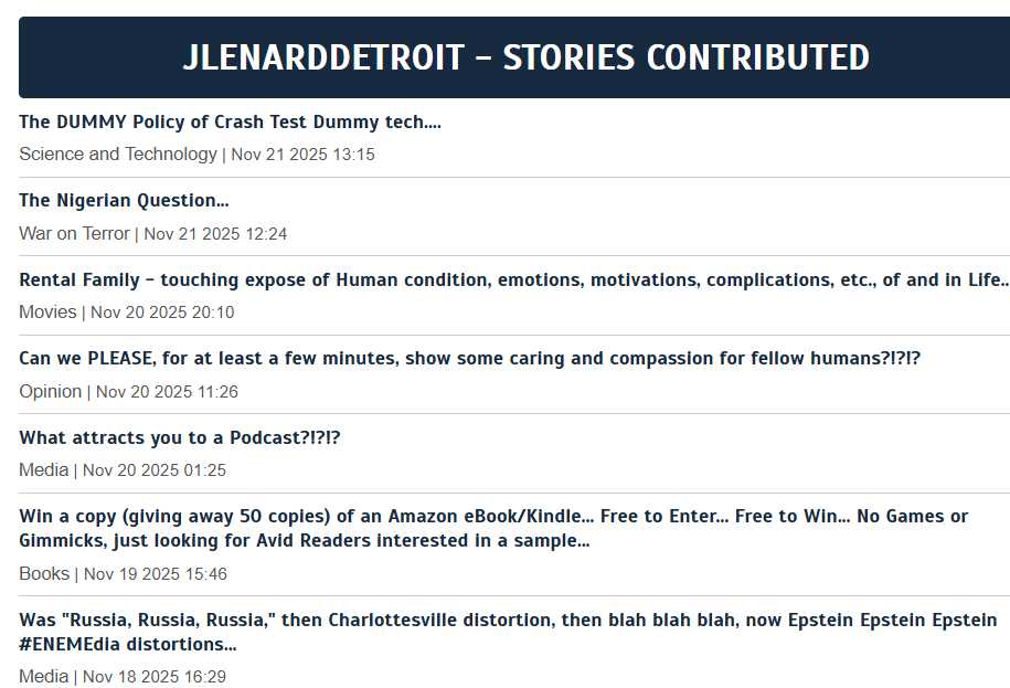 MORE about what you may want to know about me, via writings (and more detailed BIOs on those sites too (http://tinyurl.com/JLenardDetroitExtendedBio))...